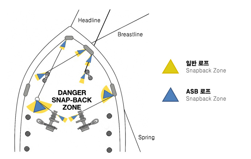 이때 발생하는 Snap back 현상은 많은 위험을 초래합니다. ASB시스템은 Core Rope가 운동에너지를 흡수함으로,