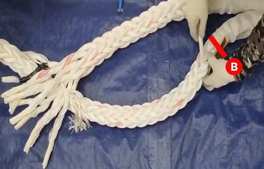 • 각 strand의 끝 부분을 테이핑 후, A지점까지 Z방향 strand를 풀어, B지점에 삽입합니다.