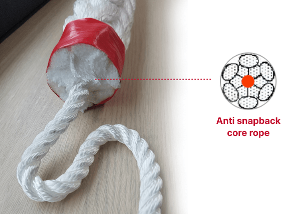 the kinetic energy generated when the rope is broken is immediately transferred in the tensile direction of the rope,